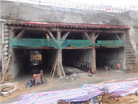 該項(xiàng)工程是國內(nèi)第一次大規(guī)模采用小口徑鎖扣管幕,取得較圓滿的成功。該項(xiàng)目共施工管幕鋼管66根,其中拱部40根,側(cè)墻26根,歷時(shí)70天。拱部管幕施工精度基本能控制在10cm以內(nèi),個(gè)別超過15cm。在管幕的保護(hù)下暗挖非常順利,初支完成后總沉降3-5cm